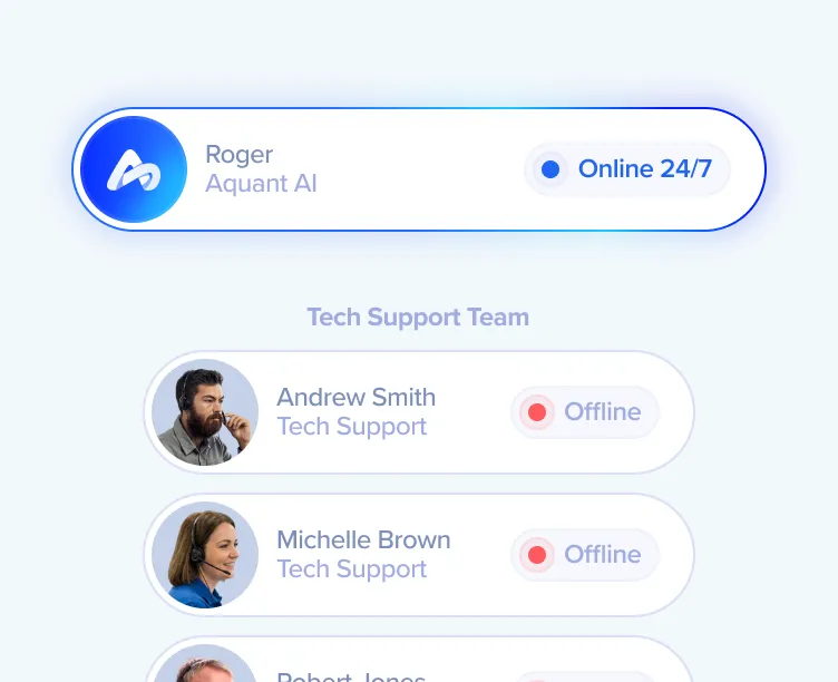 Never miss a call, even when your team is slammed. Roger answers instantly, cuts wait times, reduces the load on tech support, and keeps customers happy.
